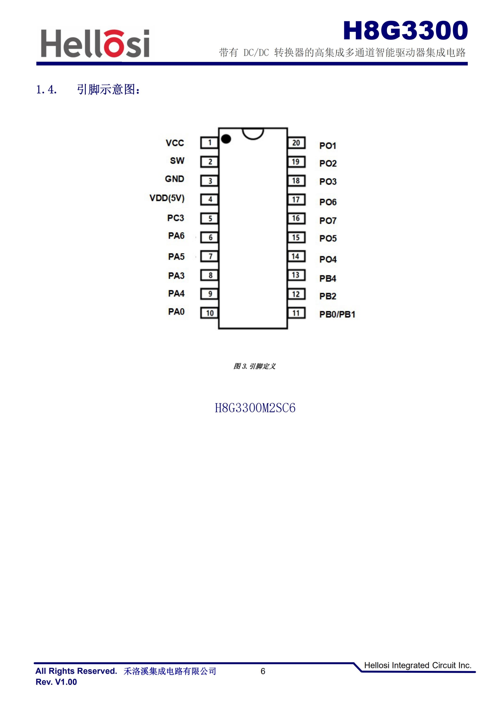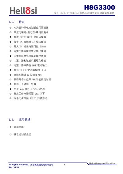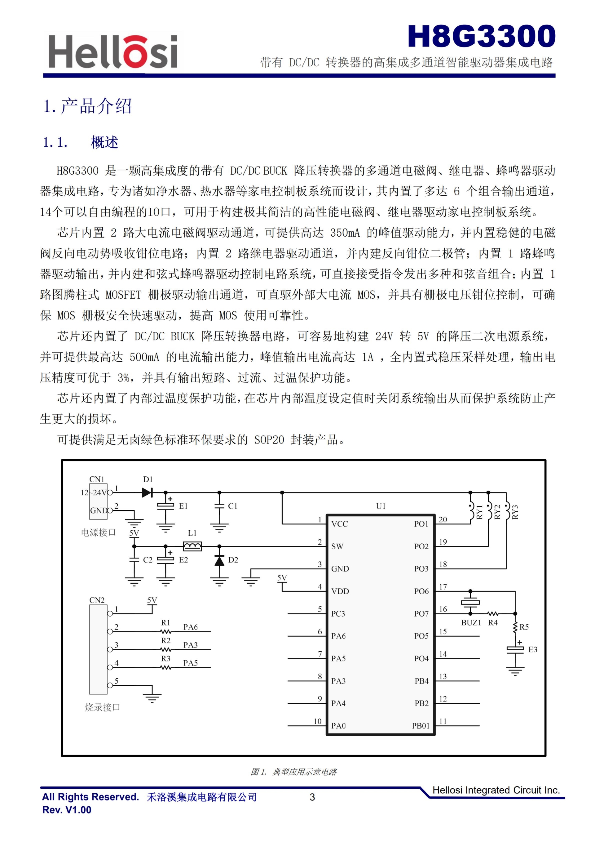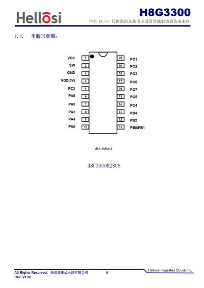 H8G3300 是一颗高集成度的带有 DC/DC BUCK 降压转换器的多通道电磁阀、继电器、蜂鸣器驱动