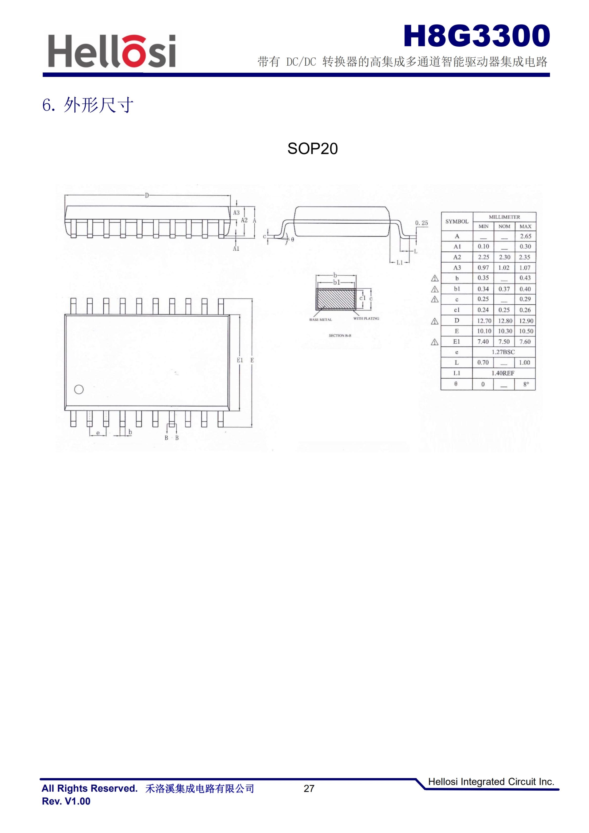 可提供满足无卤绿色标准环保要求的 SOP20 封装产品。