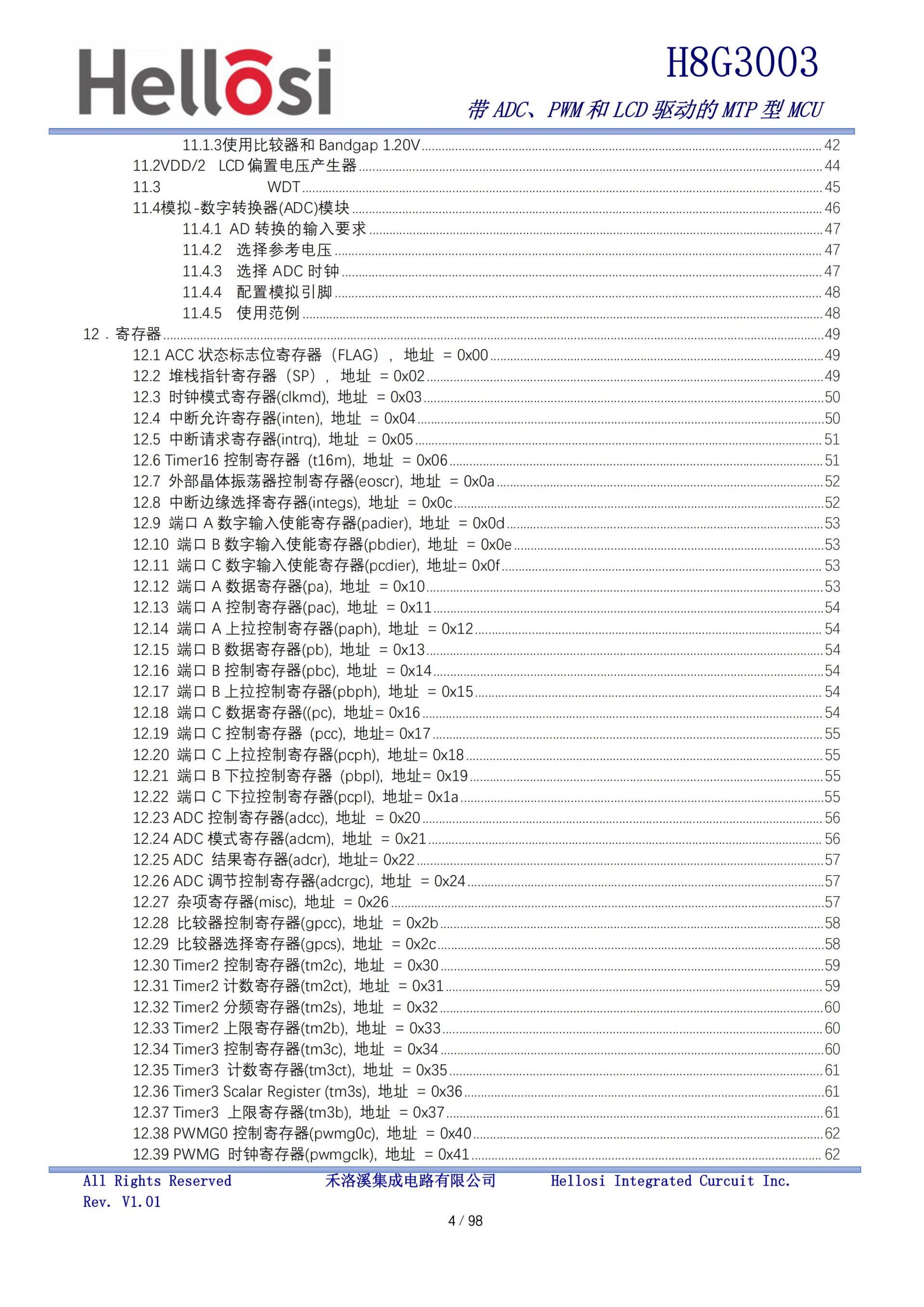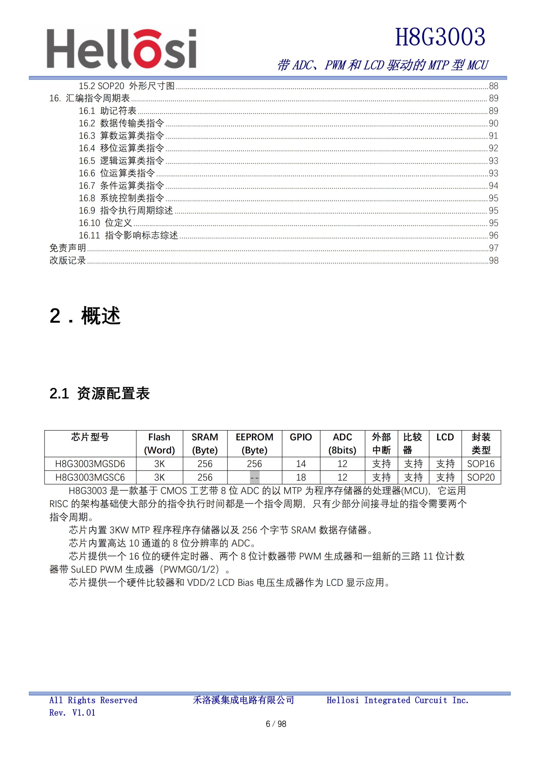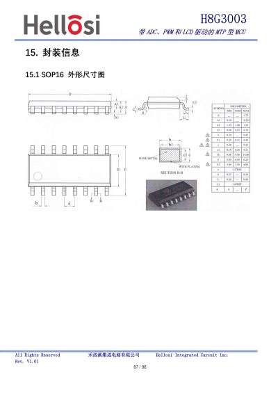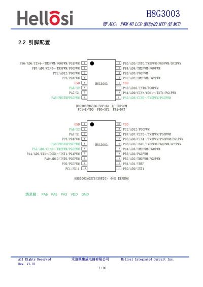 H8G3003 是一款基于 CMOS 工艺带 8 位 ADC 的以 MTP 为程序存储器的处理器(MCU),它运用